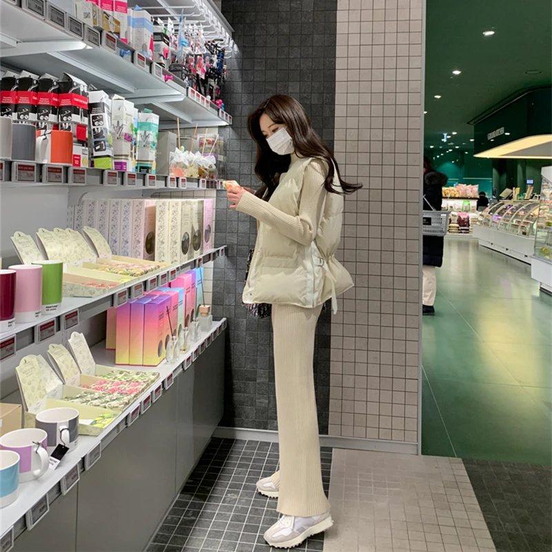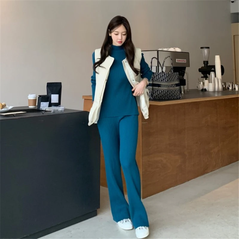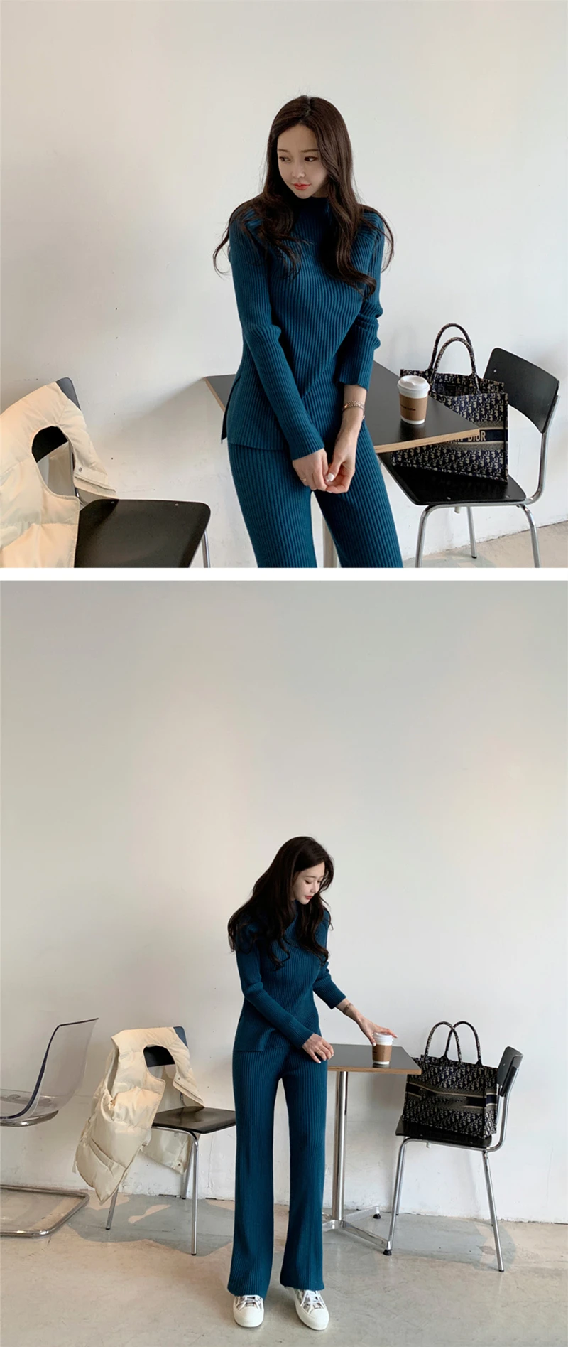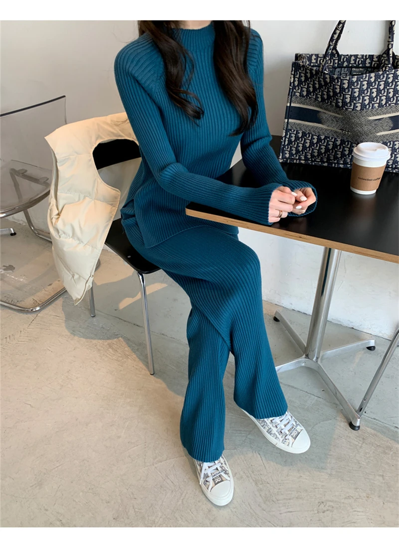 ColorfaithНовинка 2021 года; Сезон осень-зима; Женские комплекты из двух предметов; Свитера; Трикотажные пуловеры; Широкие брюки; Теплые костюмы с разрезом; WS3263