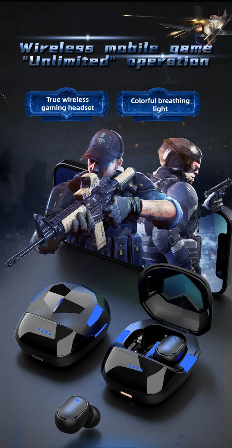 Игровые наушники-вкладыши без задержки TWS Bluetooth-совместимые наушники с микрофоном бас аудио позиционирование PUBG беспроводная гарнитура черная