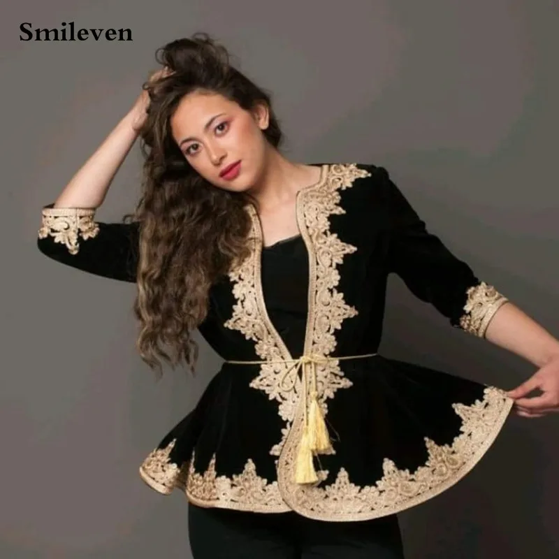 Бархатные черные вечерние платья Smileven в каракоу, алжирские кафтан, только пиджак со съемным поясом, платье для выпускного вечера, золотые кружевные вечерние платья icon star icon star icon star icon star icon star