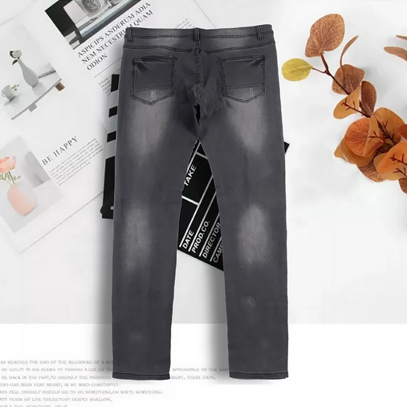 Мужские джинсы хип-хоп, черные, серые, крутые обтягивающие рваные э...