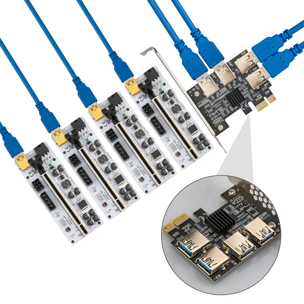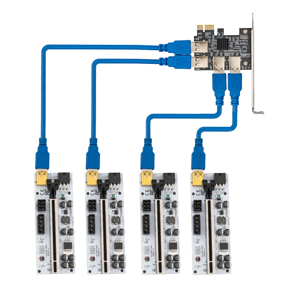 4 шт. PCI-E Express 1x до 16x Райзер 010 адаптер карты PCIE 1 до 4 слота PCIe порт множителя карты для майнинга биткоинов BTC