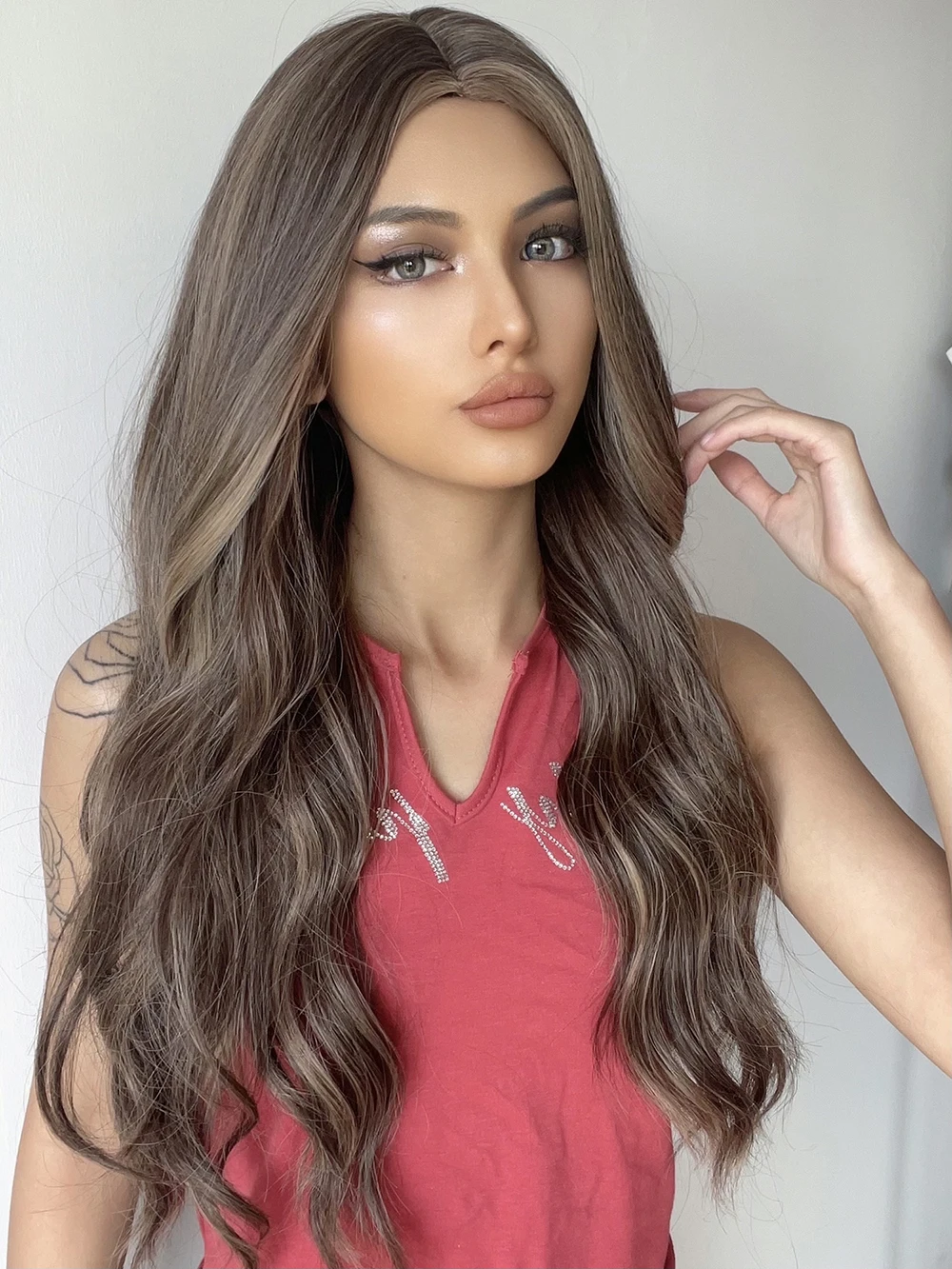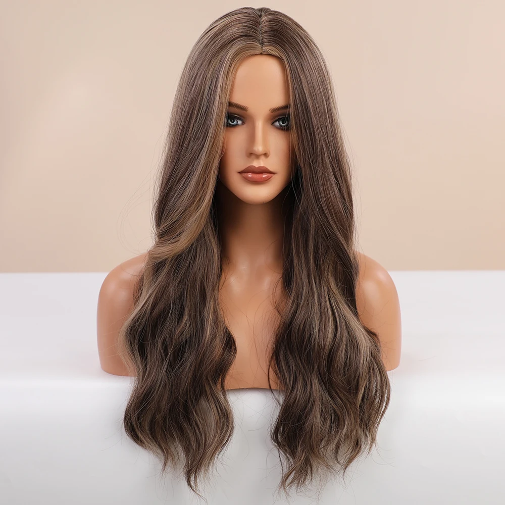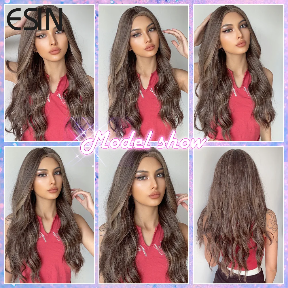 ESIN длинные волнистые темные коричневые парики с эффектом омбре средней длины для женщин синтетические волосы натуральные праздничные термостойкие