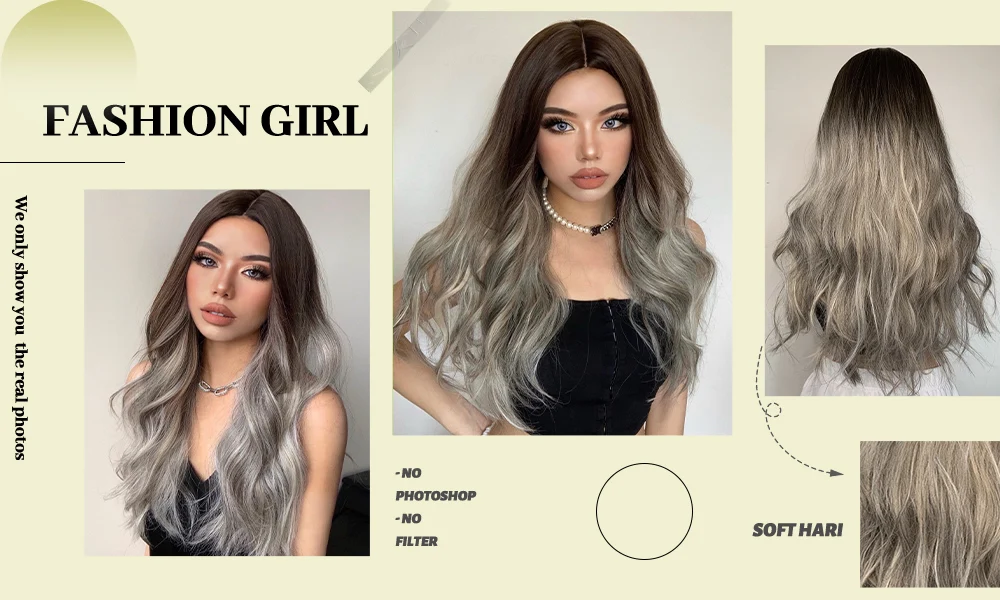 ESIN синтетические волосы Омбре коричневые длинные волнистые парики...