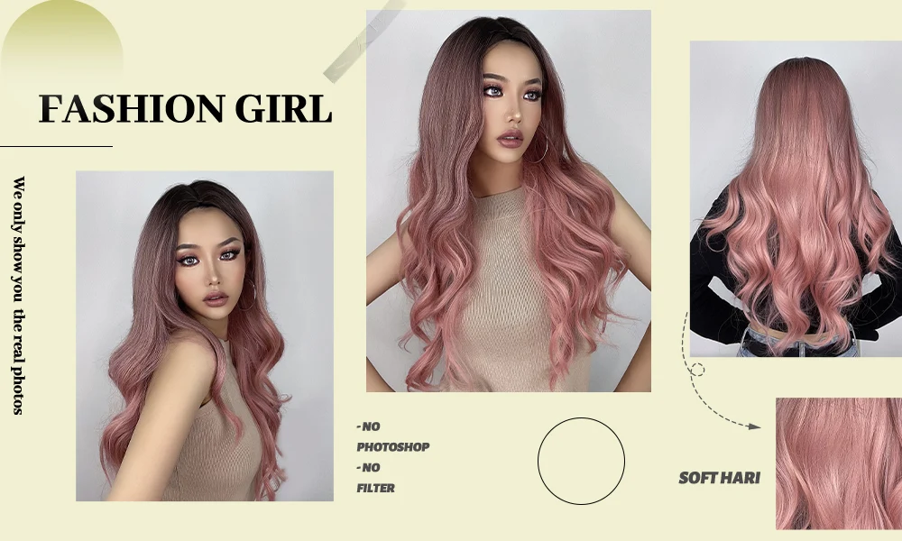 ESIN розовые синтетические волосы средней длины свободные волнистые...