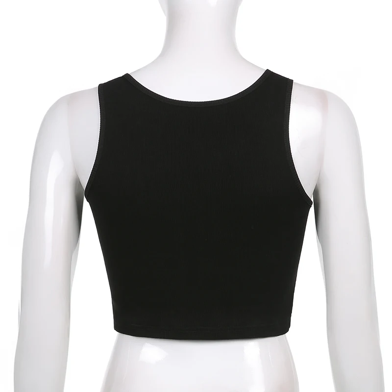 Женский короткий топ в стиле Харадзюку, черная Облегающая майка в г...