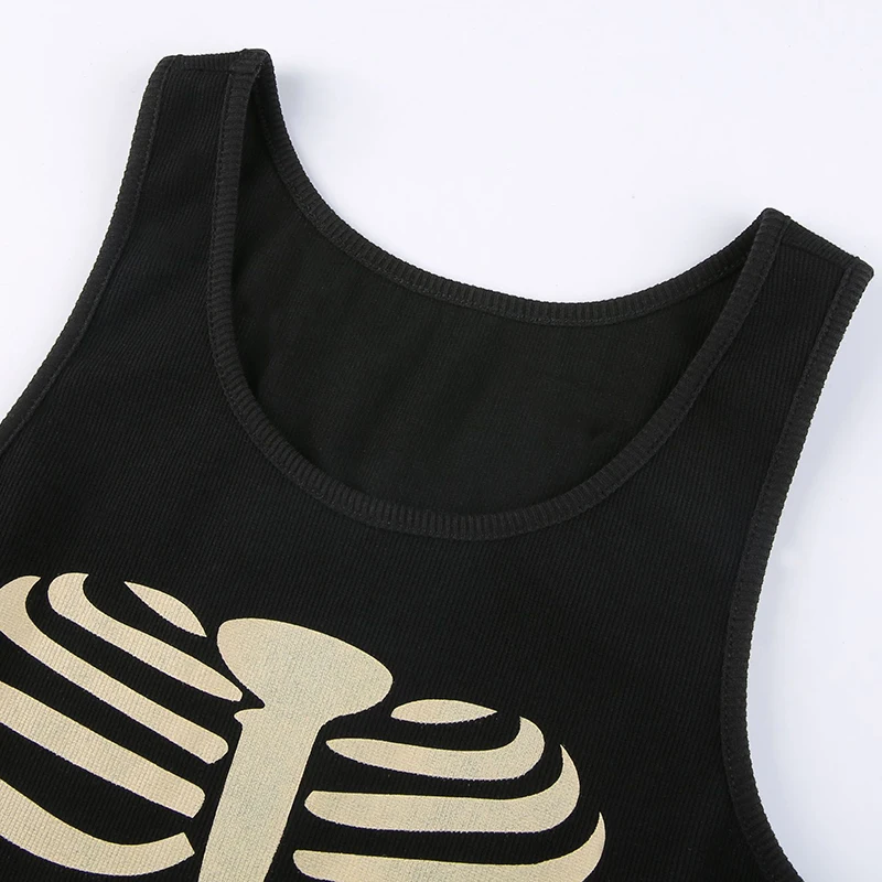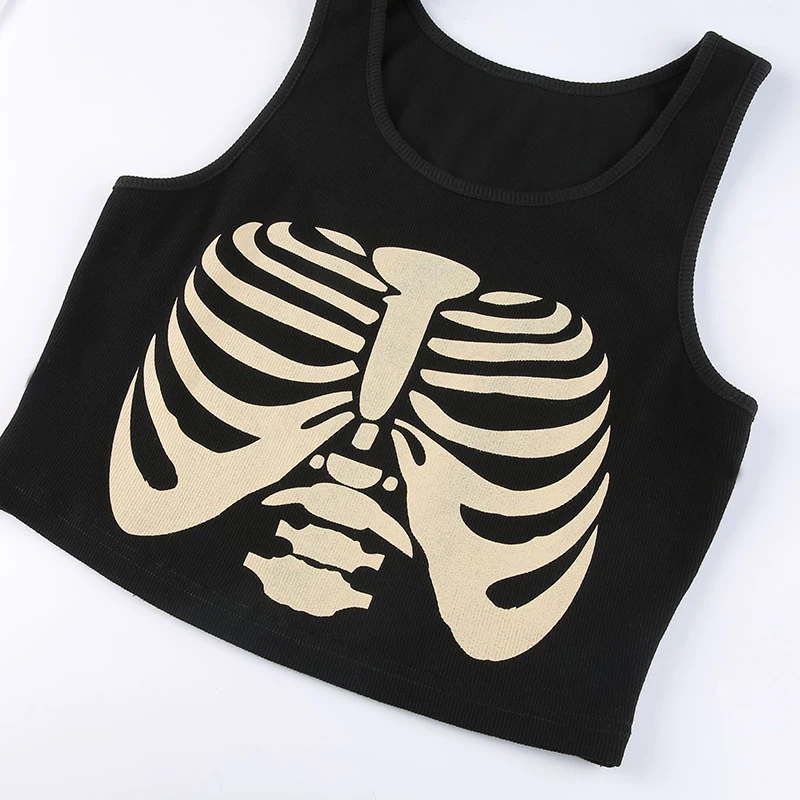 Укороченный Топ женский в стиле Харадзюку со скелетом, Черный корсе...