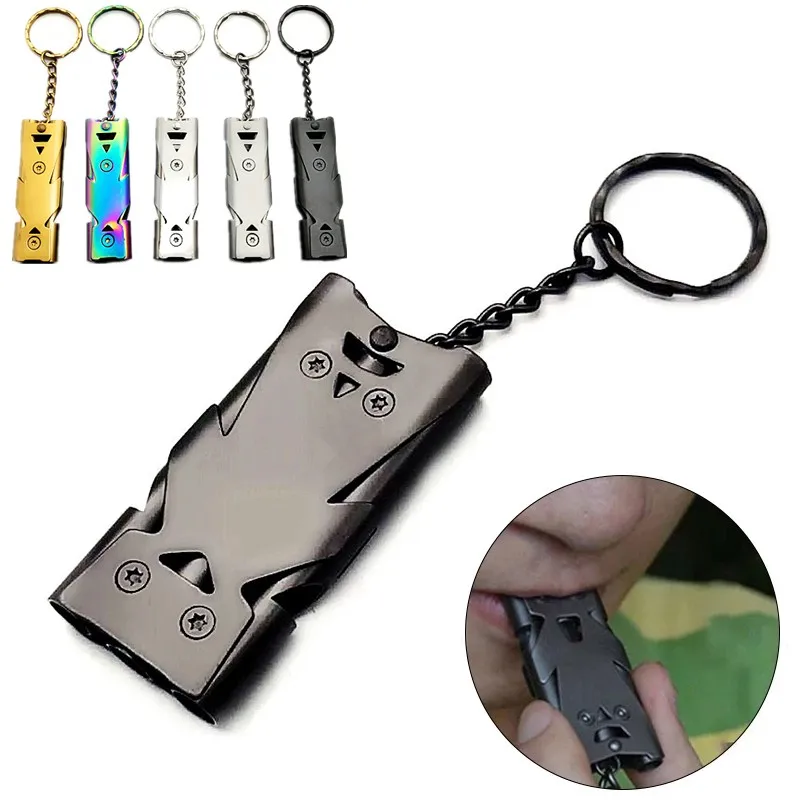 EDC свисток для выживания на открытом воздухе из нержавеющей стали Двойной трубный свисток аварийный свисток для самозащиты многофункциональный инструмент для выживания высокодецибел свисток