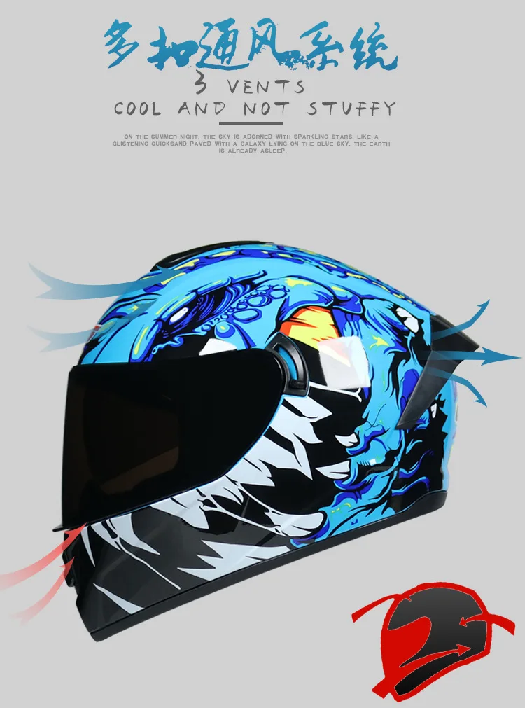 Мотоциклетный шлем на все лицо с двойным объективом стильный быстро...