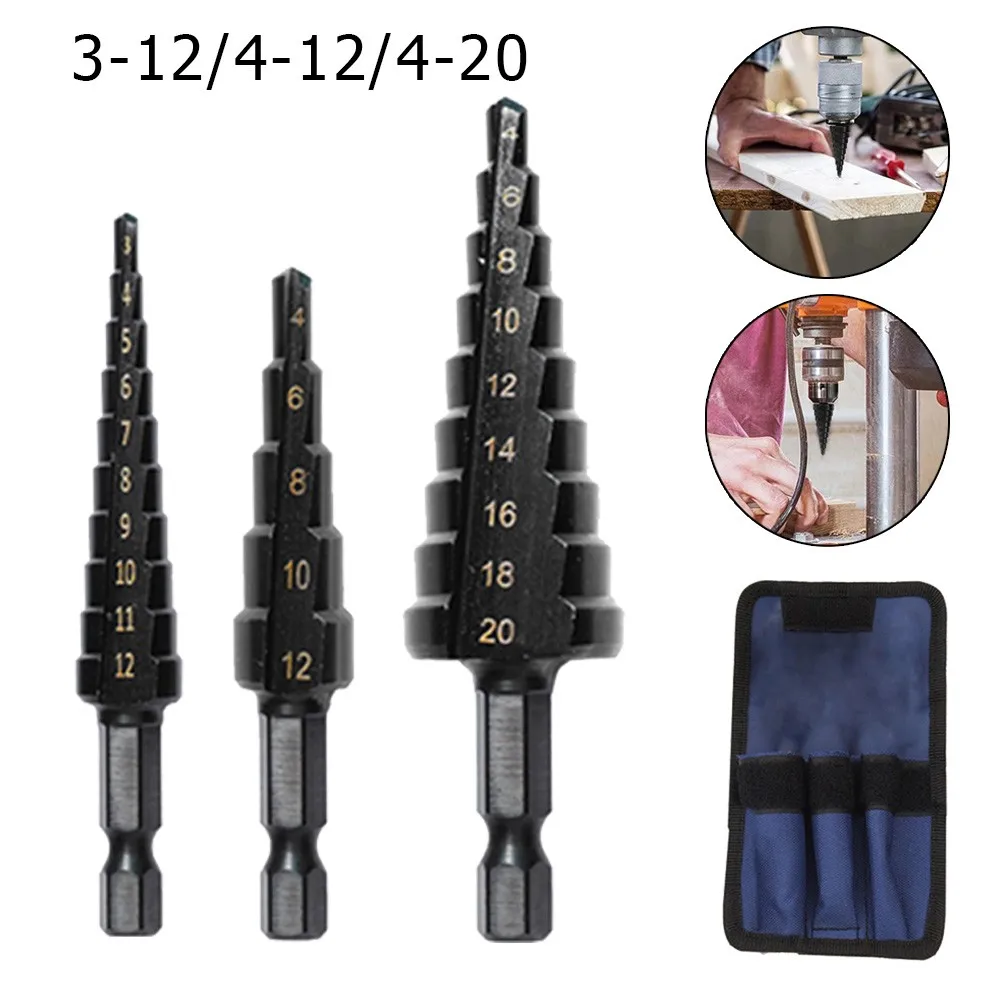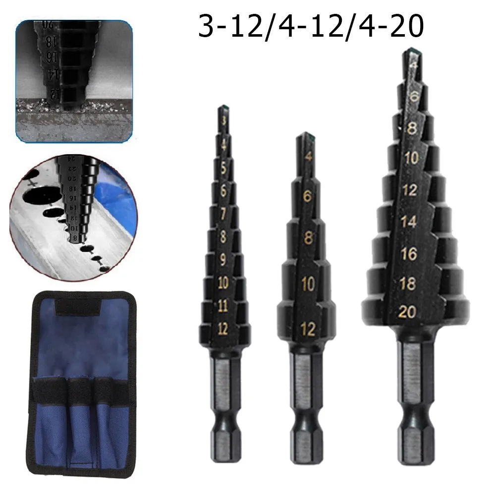 3-12 4-12 4-20 ступенчатое сверло с прямым пазом из быстрорежущей стали с титановым покрытием набор режущих инструментов для сверления отверстий по дереву