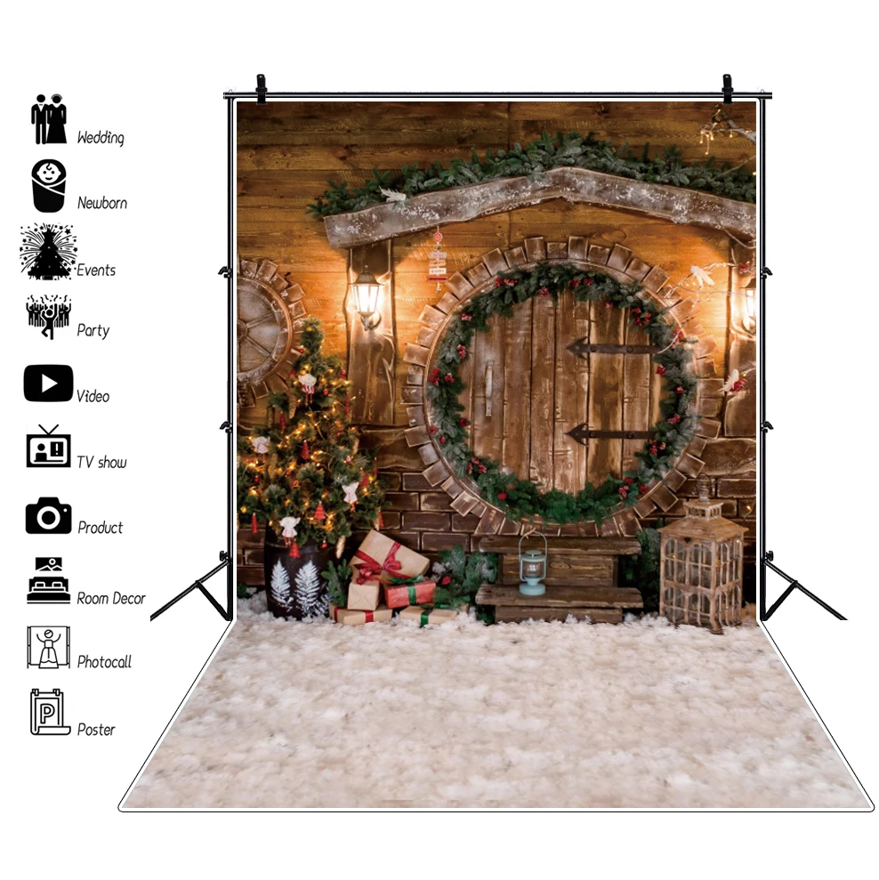 Фон для детской портретной фотосъемки с изображением деревянной круглой двери Рождественская елка винтажный фонарь семейный фон для фотосъемки Фотостудия