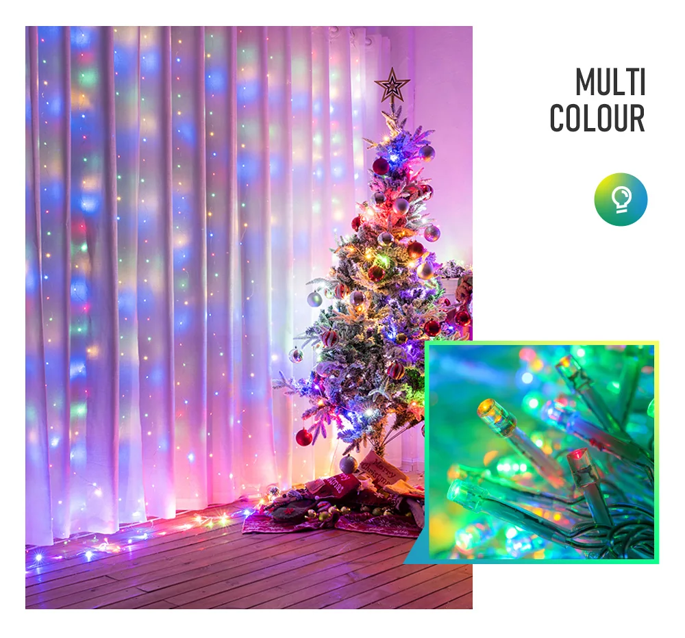 Праздничная Рождественская Декоративная гирлянда, 3 м x 3 м, 300 св...