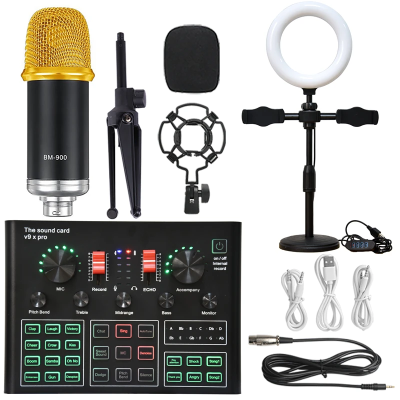 Конденсаторный микрофон BM 800, звуковая карта V9XPRO с кольцевым з...
