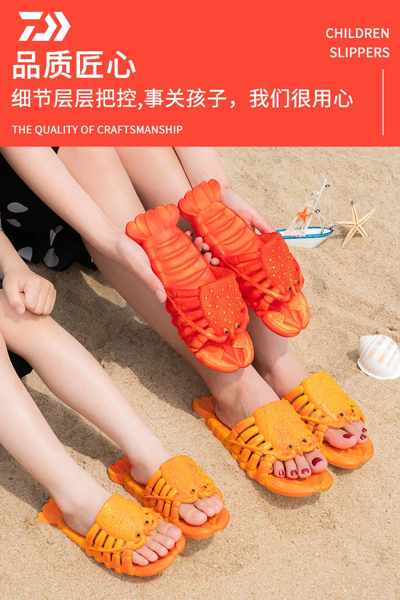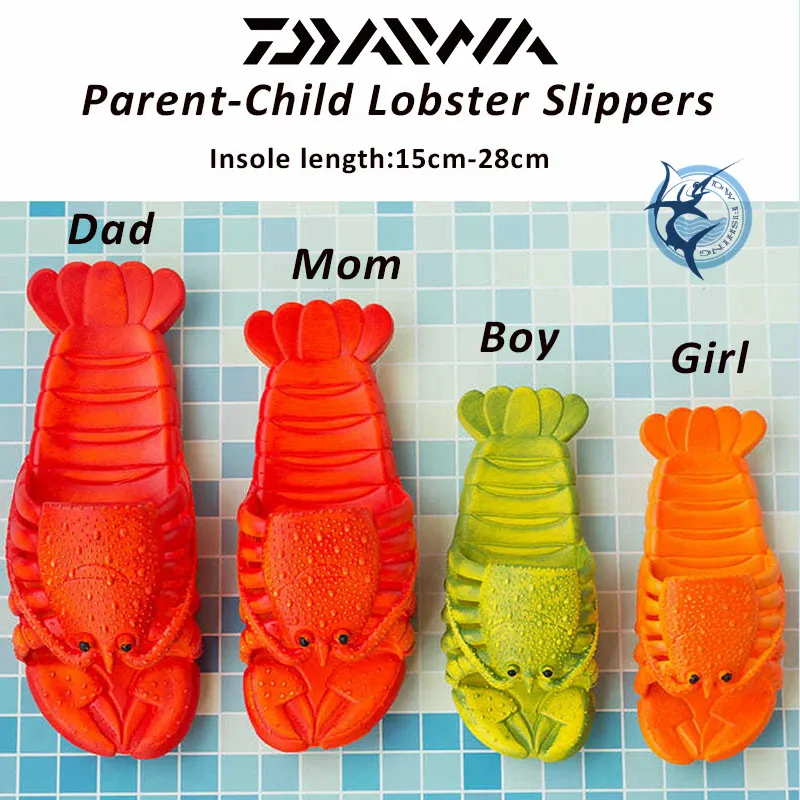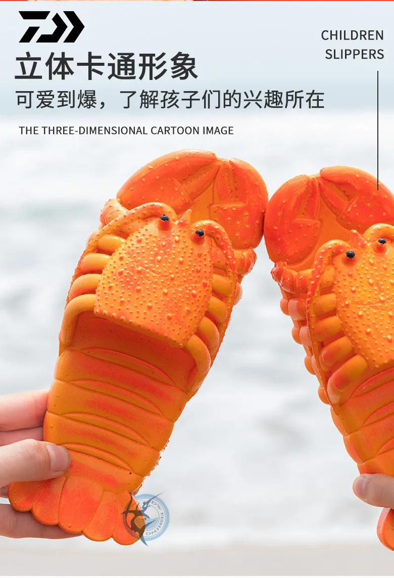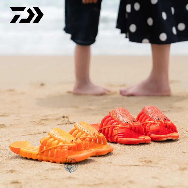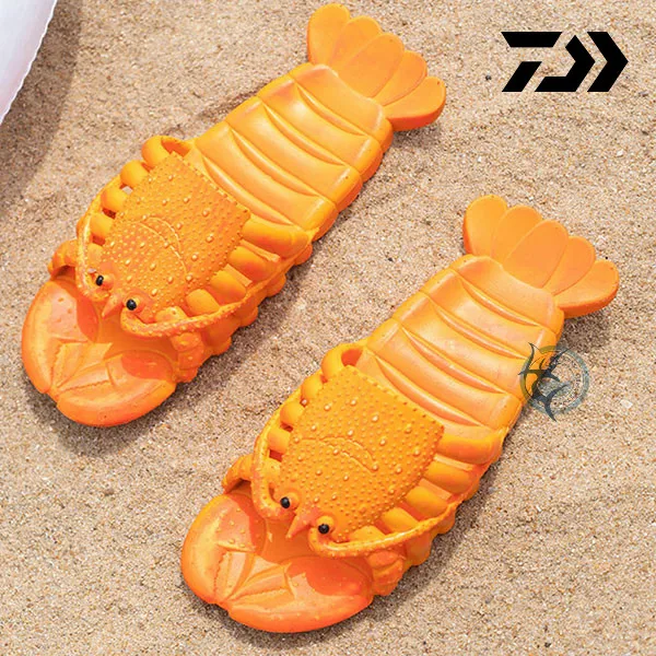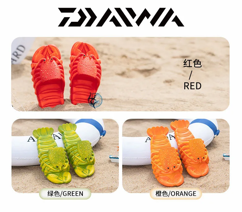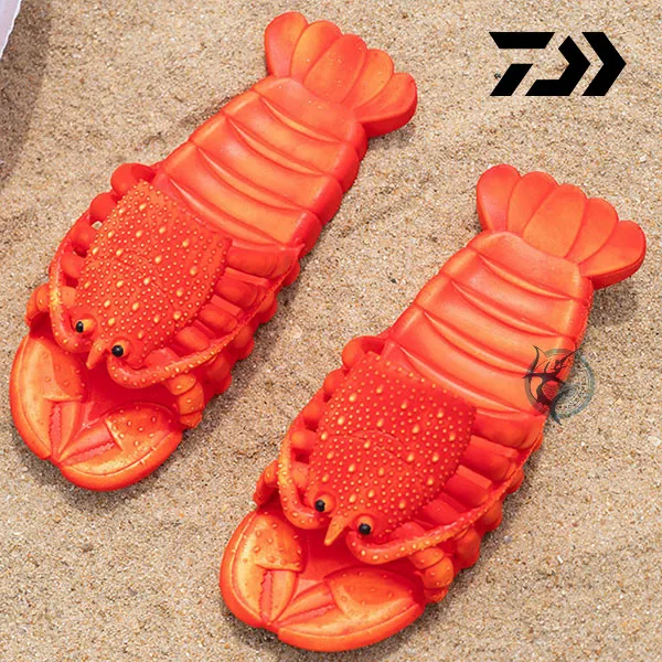 Новинка, креативная пляжная обувь DAIWA в виде лобстера, семейные Нескользящие мягкие домашние тапочки унисекс из ПВХ с плоской подошвой для рыбалки с животными