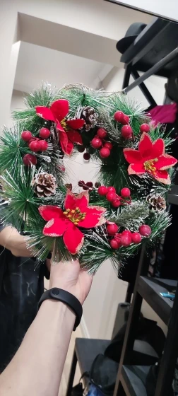 1 шт. Рождественский венок, искусственная красная фотография, подве...