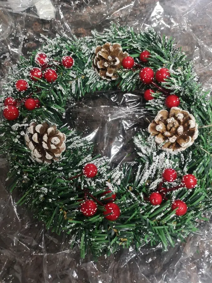 Рождественский венок, искусственные шишки из сосны, красные ягоды, ...