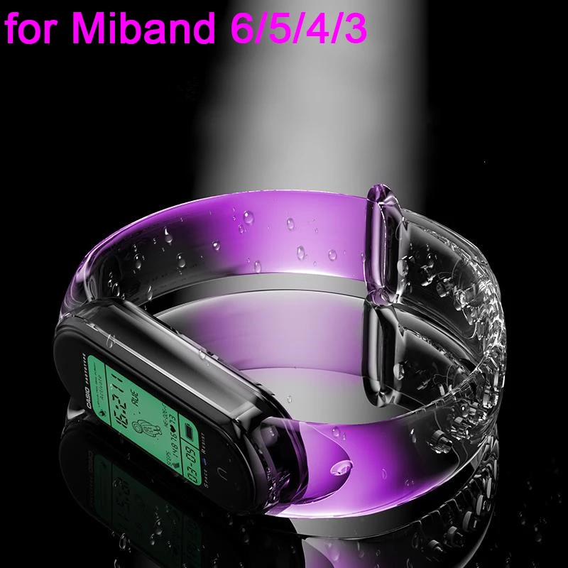 Ремешок прозрачный для Xiaomi Mi Band 6 5 4 3, меняющий цвет при солнечном свете, браслет для Mi Band 5, браслет для Mi Band 4 3