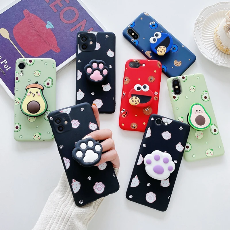 Мультяшный Чехол-держатель для телефона iPhone 11 12 13 Pro Max Mini 12pro 11pro 8 7 6S Plus 10 X Xr Xs Max 5 SE 2020, силиконовый чехол-подставка