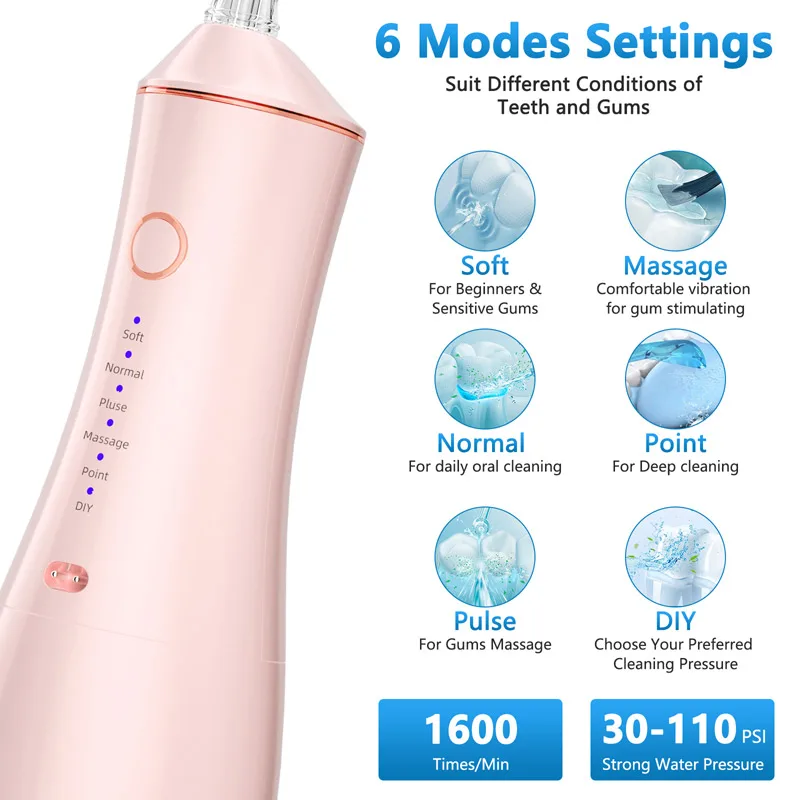 Ирригатор полости рта аккумуляторный, 320 мл, 6 режимов работы, 110 Psi, 6 насадок