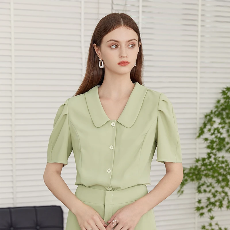 Женская однотонная кукольная рубашка fansilзанен с коротким рукавом и воротником