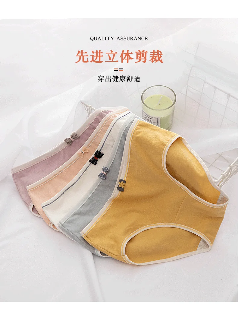 Сексуальные женские хлопковые трусики, женское милое нижнее белье для девушек, украшенное бантом, однотонные трусики, нижнее белье со средней талией