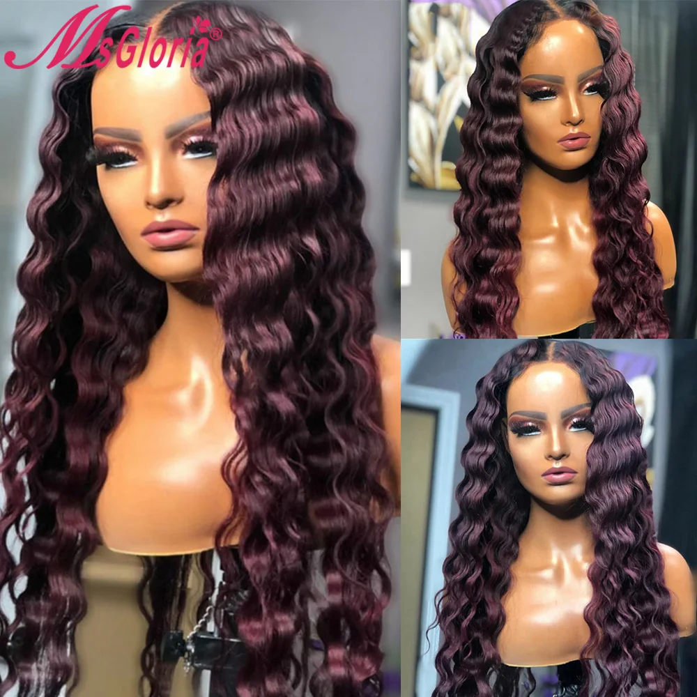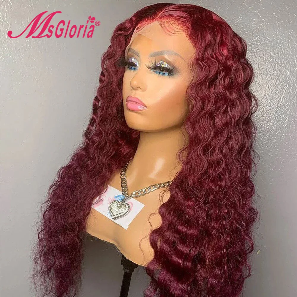 Красный парик 99J 13x4 с глубокой волной, фронтальный, фиолетовый, 13x6 HD, бордовый, на сетке, фронтальный парик, бразильские, без клея, цветные парики из человеческих волос для женщин