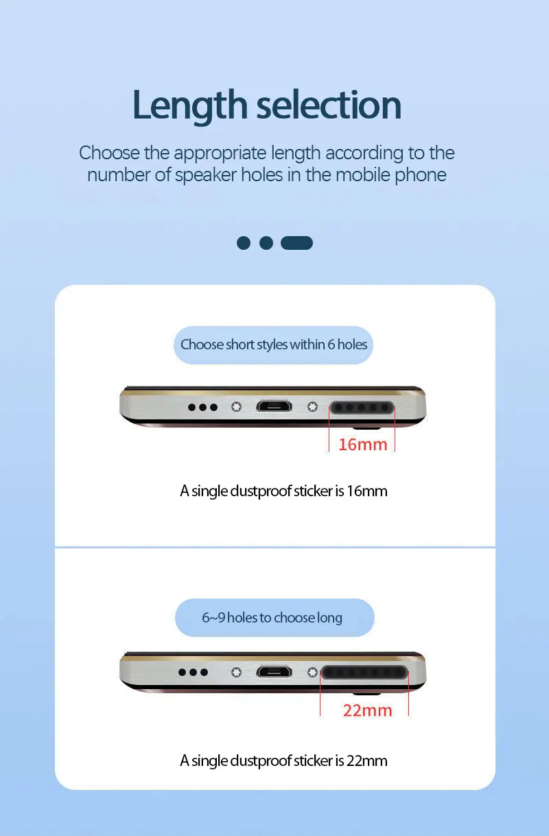 Долгосрочное использование мобильный телефон вызывает большое количество пыли для входа в отверстие громкости, которое трудно очистить и влияет на нормальное использование мобильный телефон. Используйте мобильный телефон, пылезащитный сетчатый стикер, чтобы устранить пыль на рту колокольчика и держать вдали от проблем с накоплением пыли.
