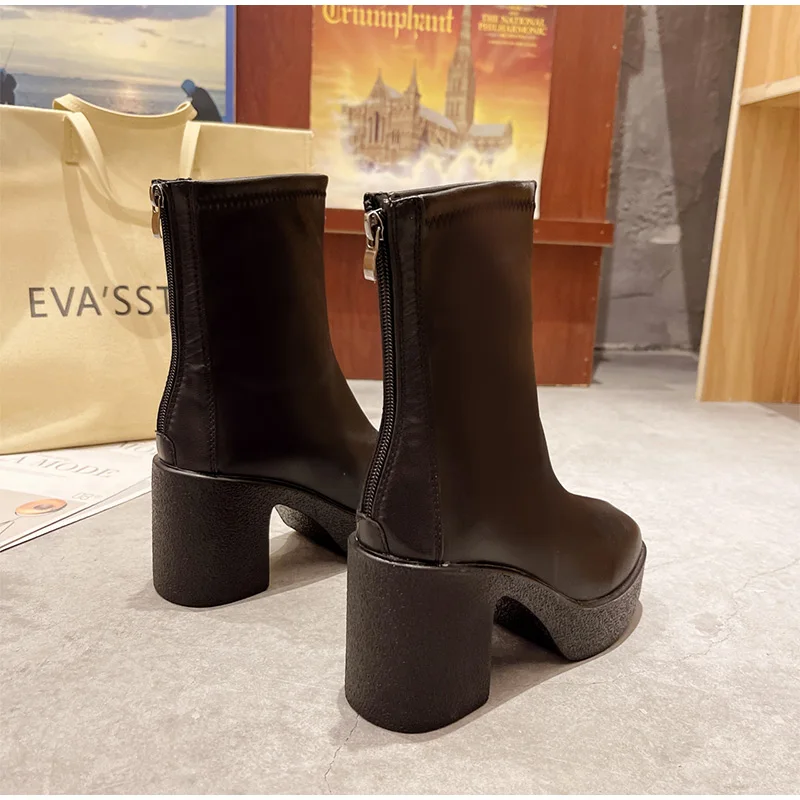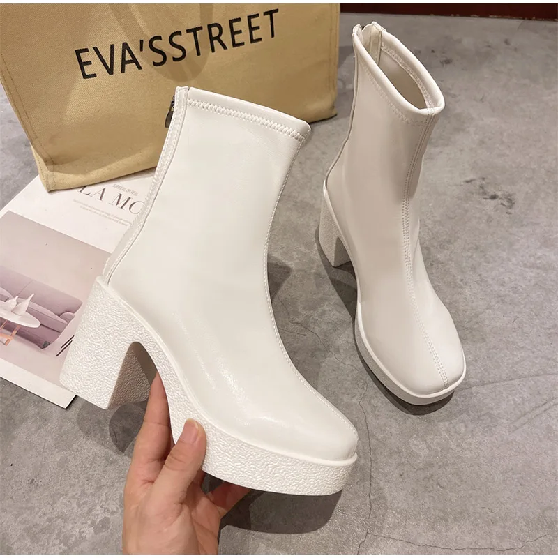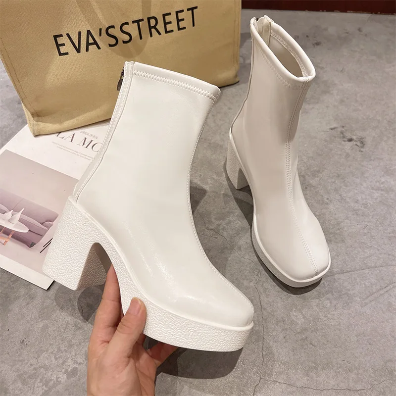 Женские ботинки из искусственной кожи, на высоком каблуке, платформе, с застежкой-молнией, 2021 г., модные, осенне-зимние, женские ботильоны