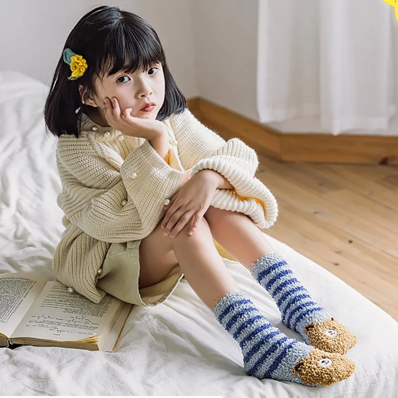 Детские зимние носки из хлопка и кораллового флиса для девочек