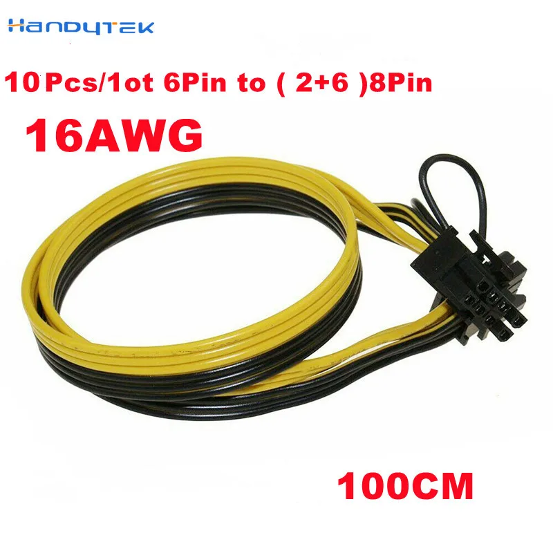 Материал: медный шнурЦвет: черный + желтый (как на фотографии)Длина кабеля: 100 смПровод: 16awgРазъем: 6-контактный штекер на 8(6 + 2)-штырьковый штырьКабель адаптера питания PCI Express 6 pin-8 pin позволяет подключать Стандартный блок питания PCI-E к видеокартам с 6-контактным или 8-контактным разъемом.Совместим с блоком питания PSU Breakout Board Adapter, который для использования с HP серверным блоком питания 750 Вт/1200 Вт/1400 Вт/1500 Вт и более-DPS-1200FB, HSTNS-PD11, HSTNS-PL11, HSTNS-PL18, 438202-002, 441830-001, HSTNS-PL33, 684529-001, 684530-201, 704604-001 , 684532-B21, 5117778-001, 506821-001, DPS-1200FB DPS-800GB DPS-1200QB PS-2751-5Q PS-2751-LF-1F HSTSN-PL12 DPS-700LB PS-2112-5L DPS-750RB и более экономически эффективное решение для майнеров из эфириума, биткойнов, пульсации, Litecoin, Z-coins и других альт-валют.6 + 2Pin разъем подключен к изображению видео карты с 6-Pin или 8-Pin PCIe слот, подходит для бп марки как для, для AMD для Corsair, T/T, для OCZ, для ASUS, для ASRock, для EVGA, для Gigabyte и многое другое.Изготовлен из высококачественных 16AWG проводов, кабели способны на 300 Вт на 6pin кабельДлинный шнур длиной 100 см, прост в использовании и установке