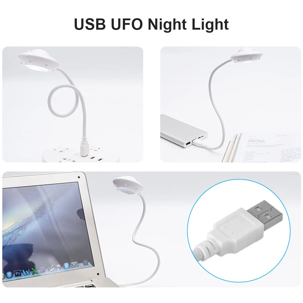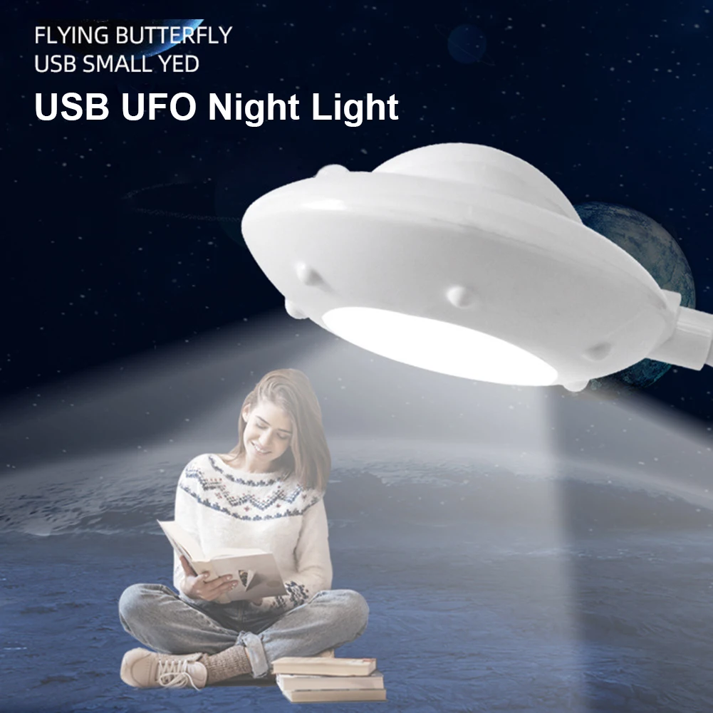 Светодиодный настольный светильник в форме НЛО для чтения, портативная Настольная лампа с защитой глаз и USB-зарядкой, прикроватные лампы для детской, спальни