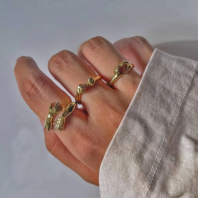 Набор креативных колец, 3 шт., открытые кольца в виде сердца для женщин, винтажные геометрические соединительные кольца, ювелирные изделия в подарок