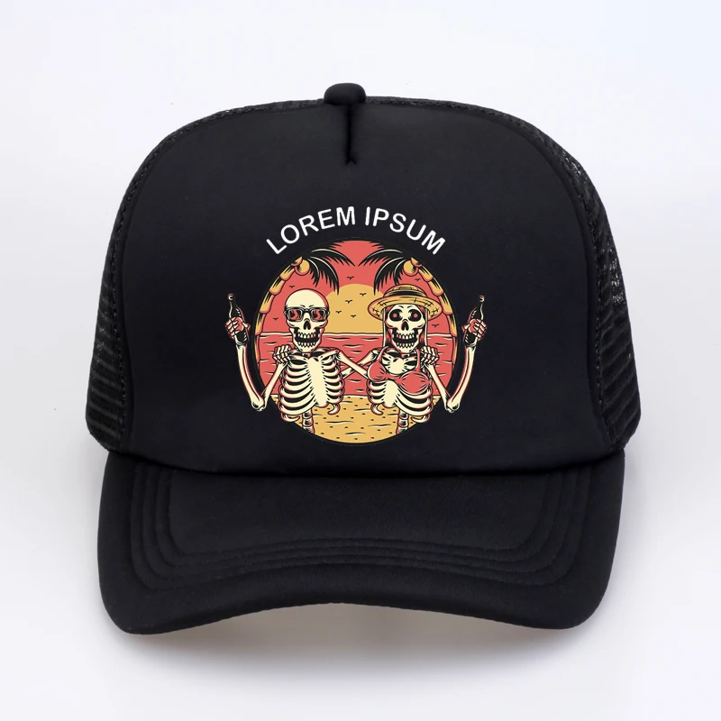 Бейсболка Lorem Ipsum в стиле панк с черепом, пляжная шляпа от солнца для пар, модная летняя пляжная шляпа от солнца для отпуска, Мужская сетчатая дышащая бейсболка
