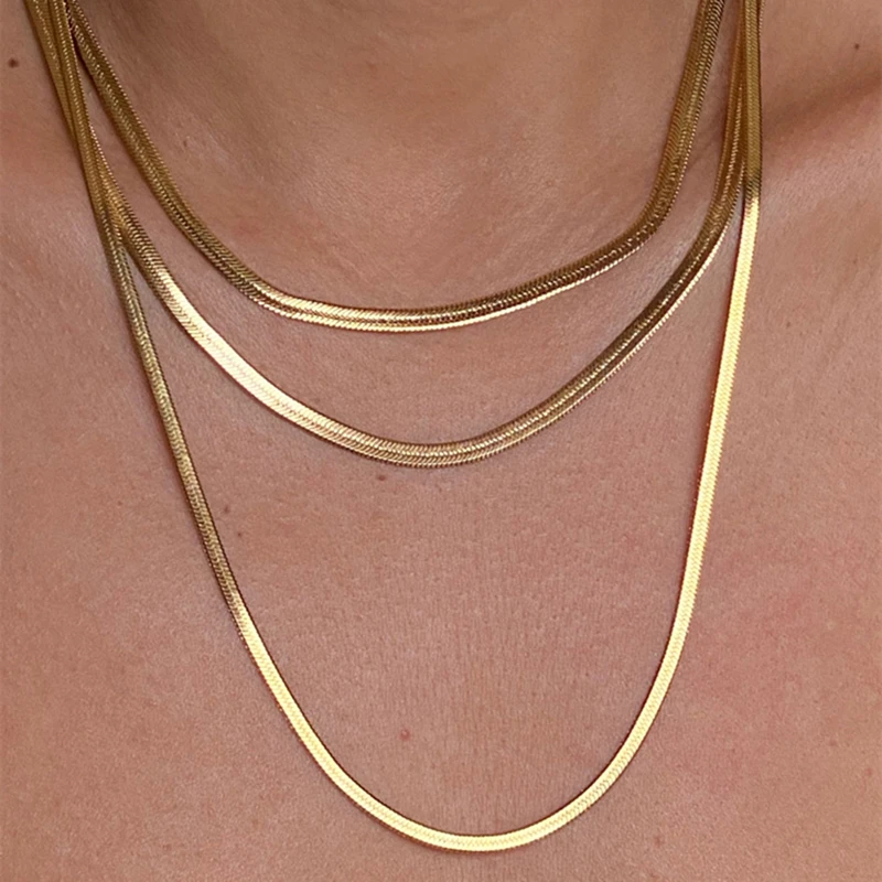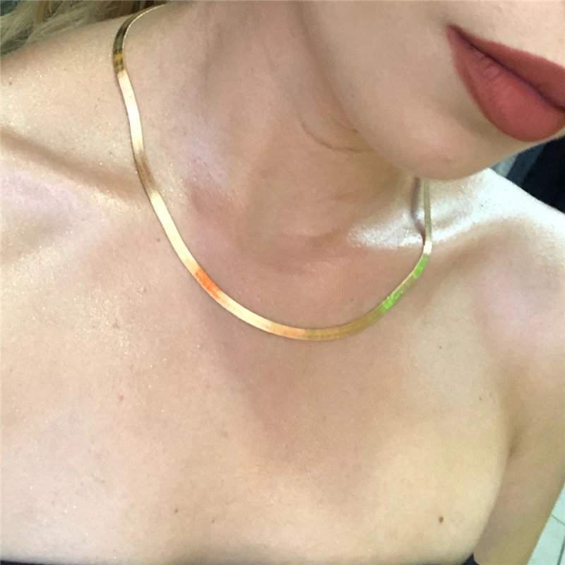 Плоское Ожерелье из нержавеющей стали золотого и серебряного цвета, водонепроницаемая цепочка змейка, для мужчин и женщин, Подарочная бижутерия
