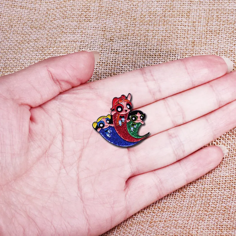 Супер девушки PowerpuffGirls эмалевые булавки цветущие пузырьки и б...