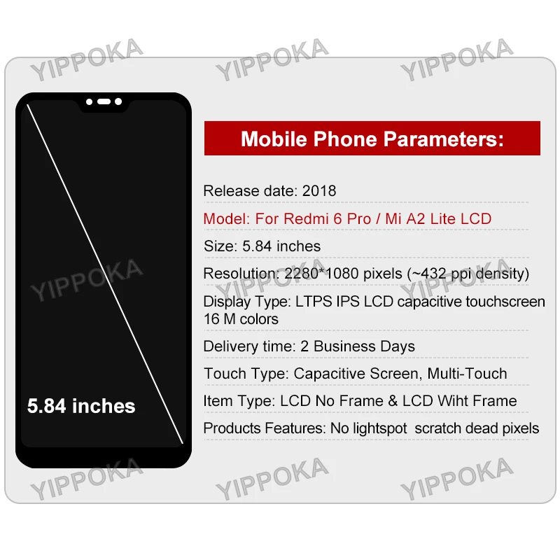 1. Оригинальный качественный ЖК-экран в сборе дляXiaomi A2 Lite Redmi 6 Pro