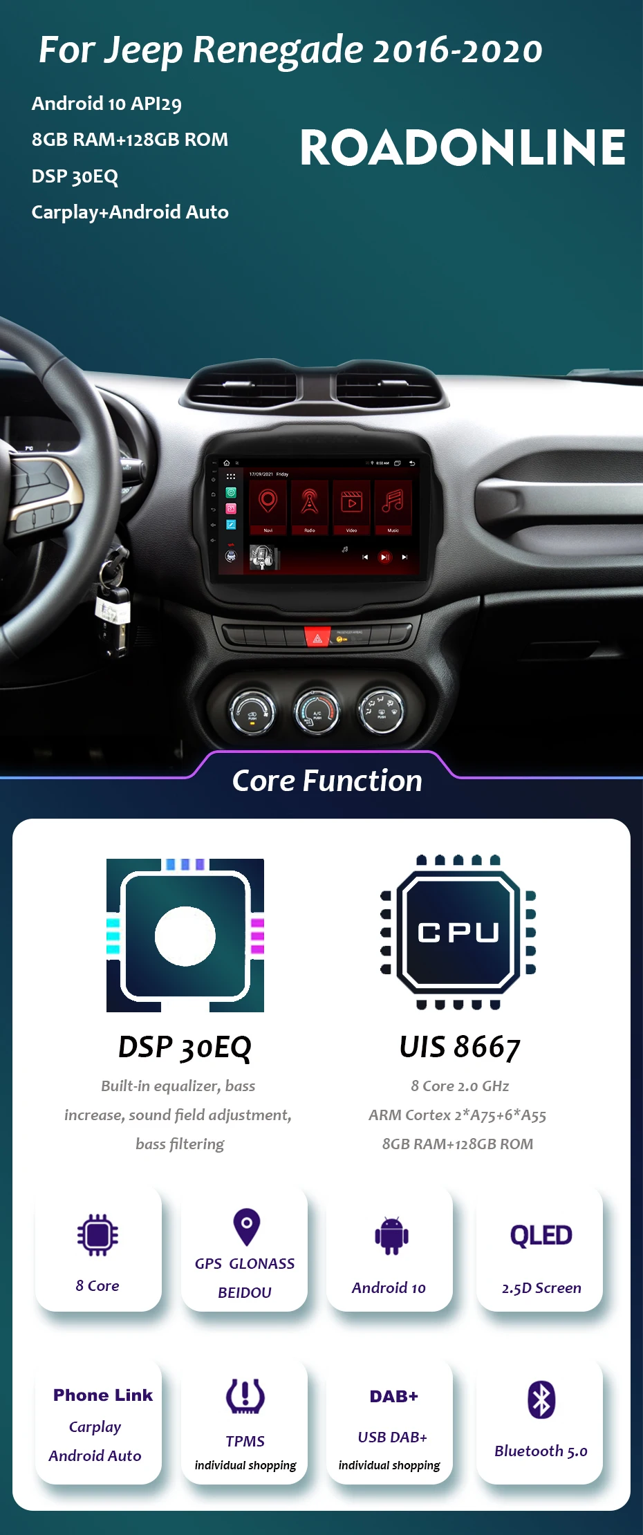Автомобильный радиоприемник на Android, 8 + 256 ГБ, для Jeep Renegade 2016-2020, видеопроигрыватель, Carplay, BT, Wi-Fi, навигация, GPS