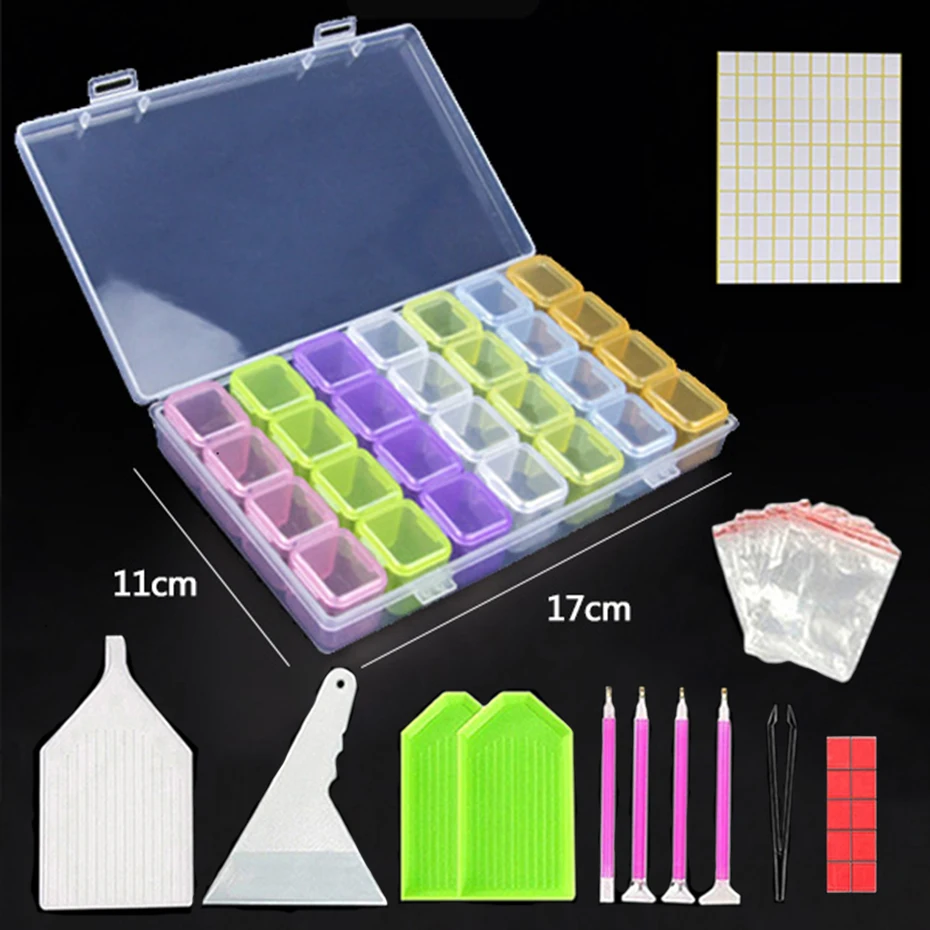 28 сеток 5D DIY коробка для алмазной живописи Органайзер чехол Алмазная вышивка аксессуары контейнеры для хранения с 40 шт Наборы инструментов