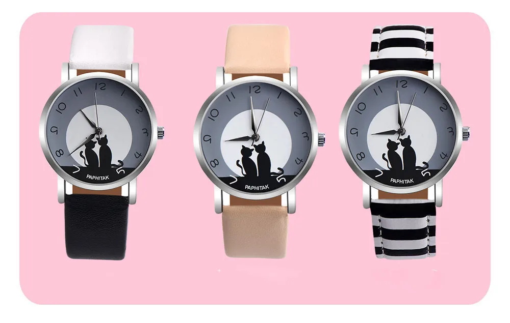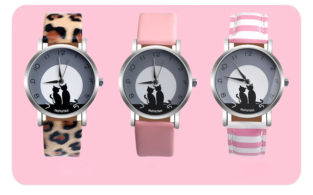 Женская обувь PAPHITAKАналоговые кварцевые часы с милым котом из искусственной кожи