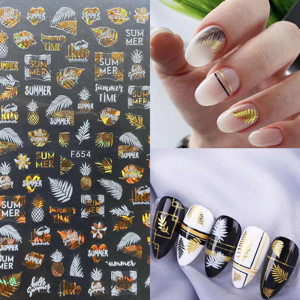 3D-Наклейки для ногтей, 1 шт., летние блестящие, золотистые, черные...