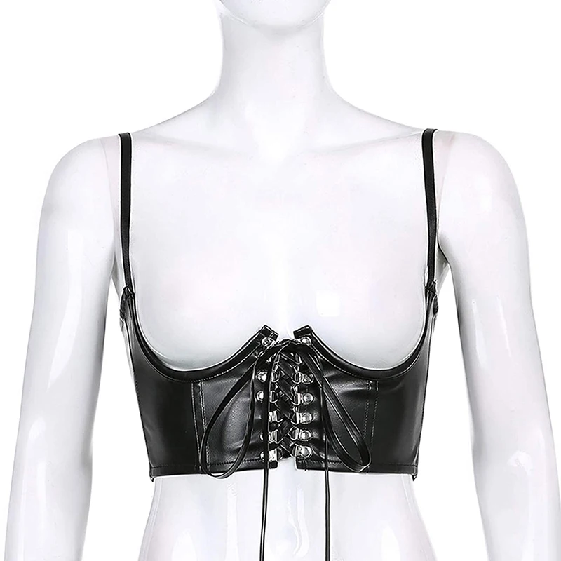 Готический корсет из искусственной кожи, женский укороченный топ на...