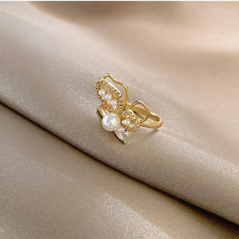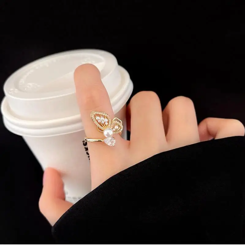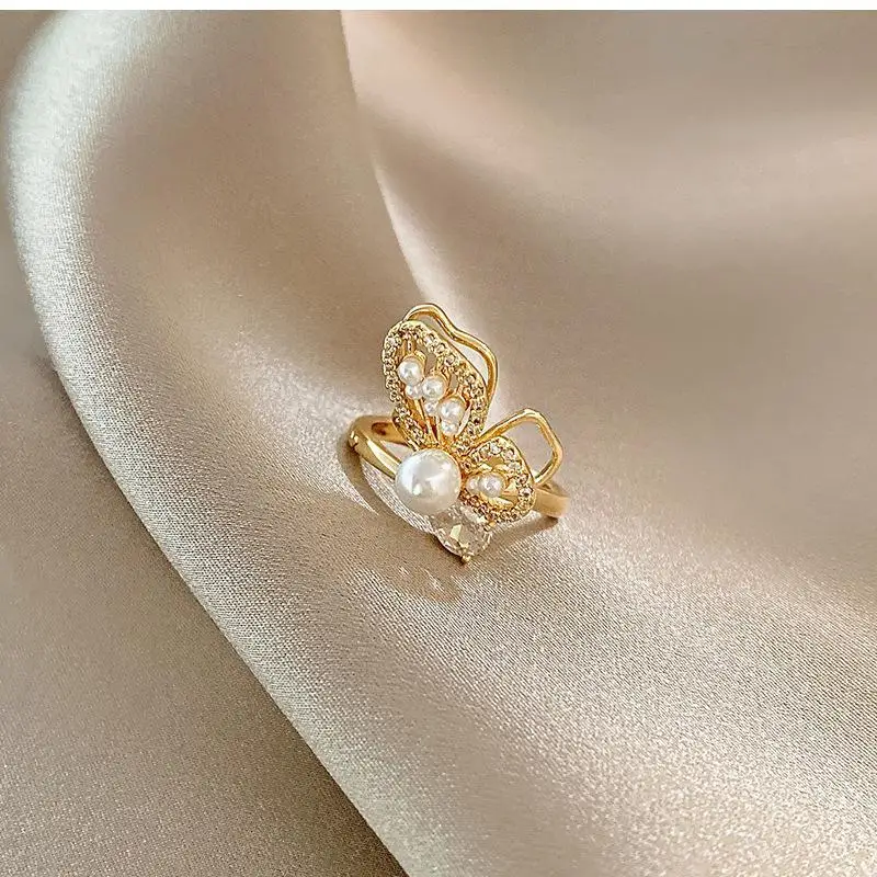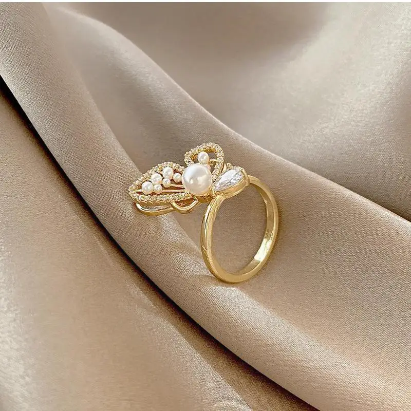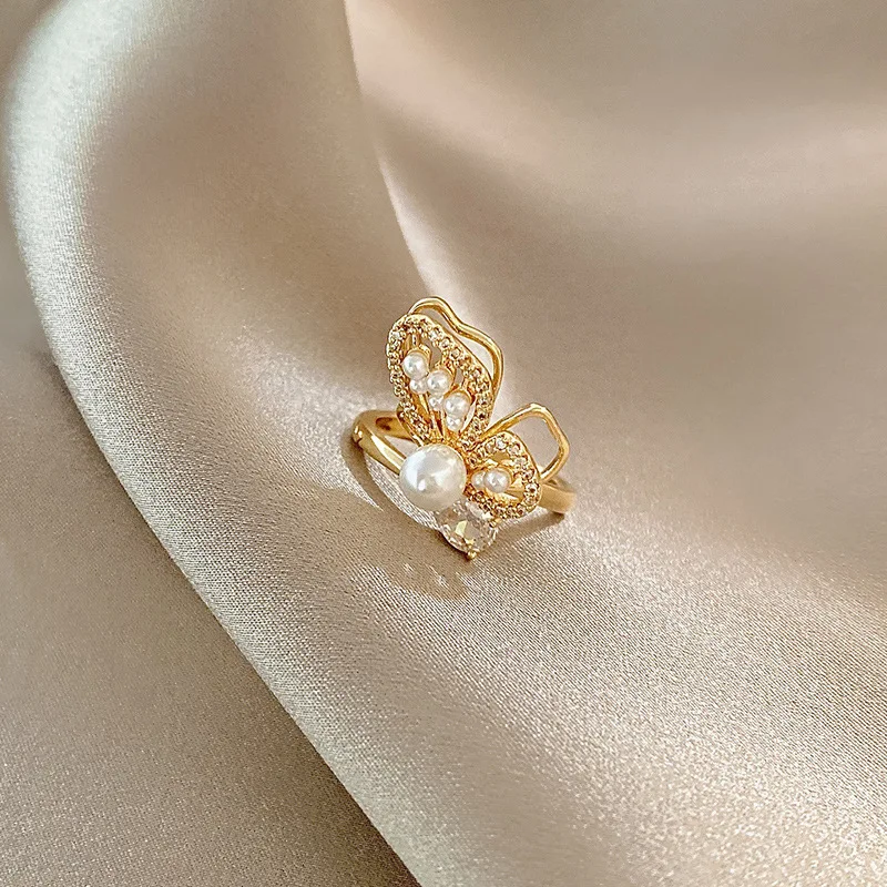 Женское кольцо с искусственным жемчугом, Открытое кольцо с бабочкой из циркона и жемчуга, 2021