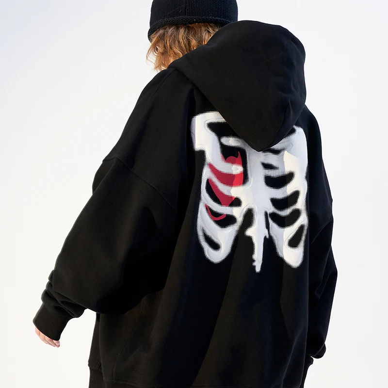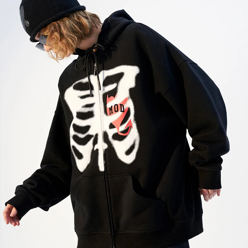 Толстовка Y2K в стиле Харадзюку со скелетом на молнии, Мужская толс...