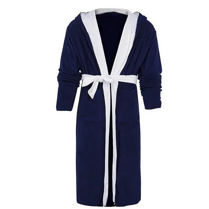 Удлиненный банный халат с капюшоном Однотонный мужской зимний плюшевый Карманный длинный халат в стиле пэчворк с длинным рукавом Интимная Пижама с V-образным вырезом 2021