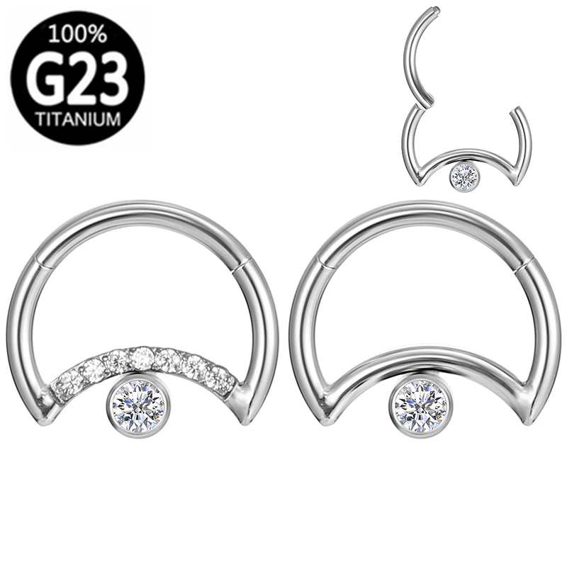 Титановое кольцо G23 для носа в форме Луны, циркониевое кольцо, пирсинг, Септум, кликер, Ювелирное кольцо, шарнирный сегментный Хрящ уха