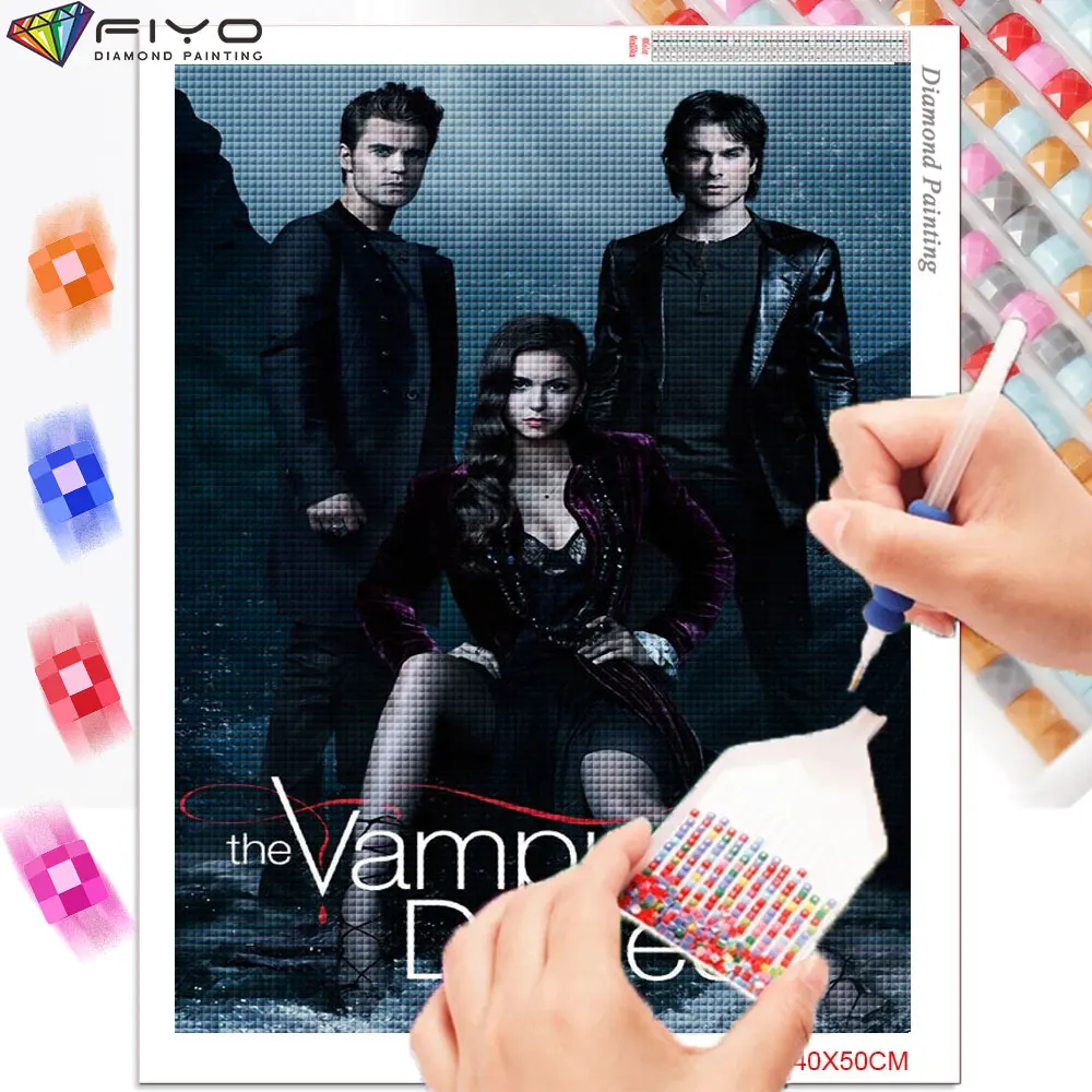 5D Diy Вышивка Дневники вампира Деймон Стефан Елена алмазная живопись с квадратным сверлом вышивка крестиком Мозаика Искусство домашний декор