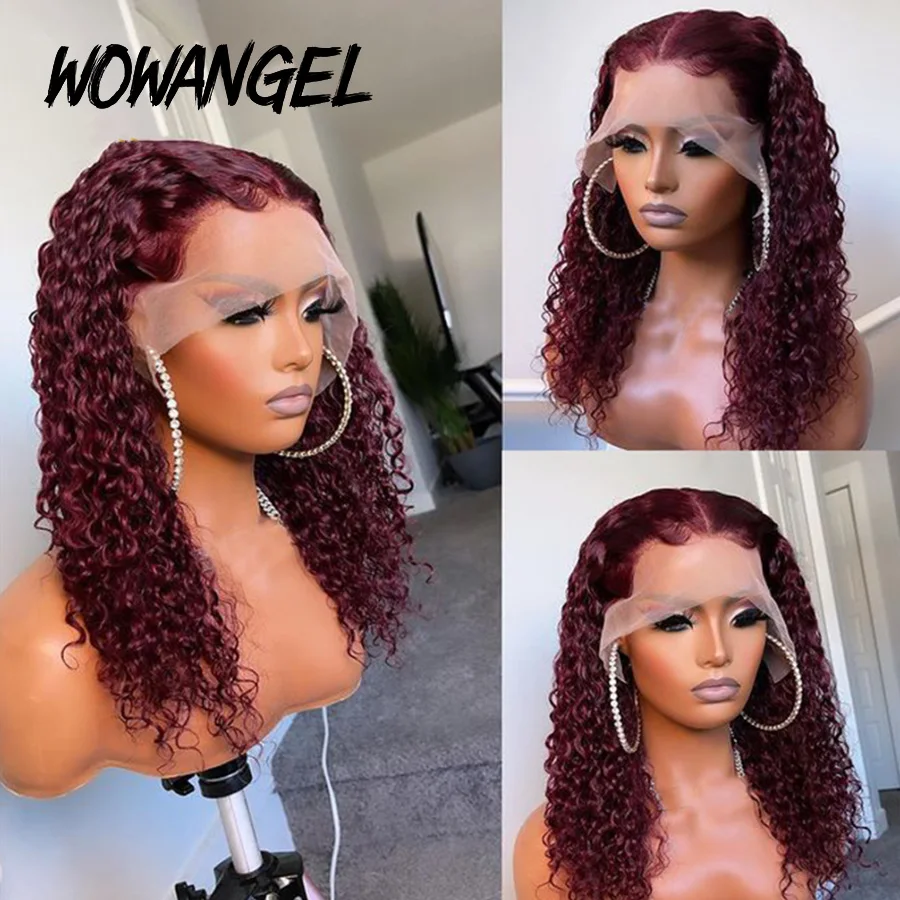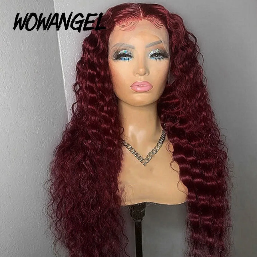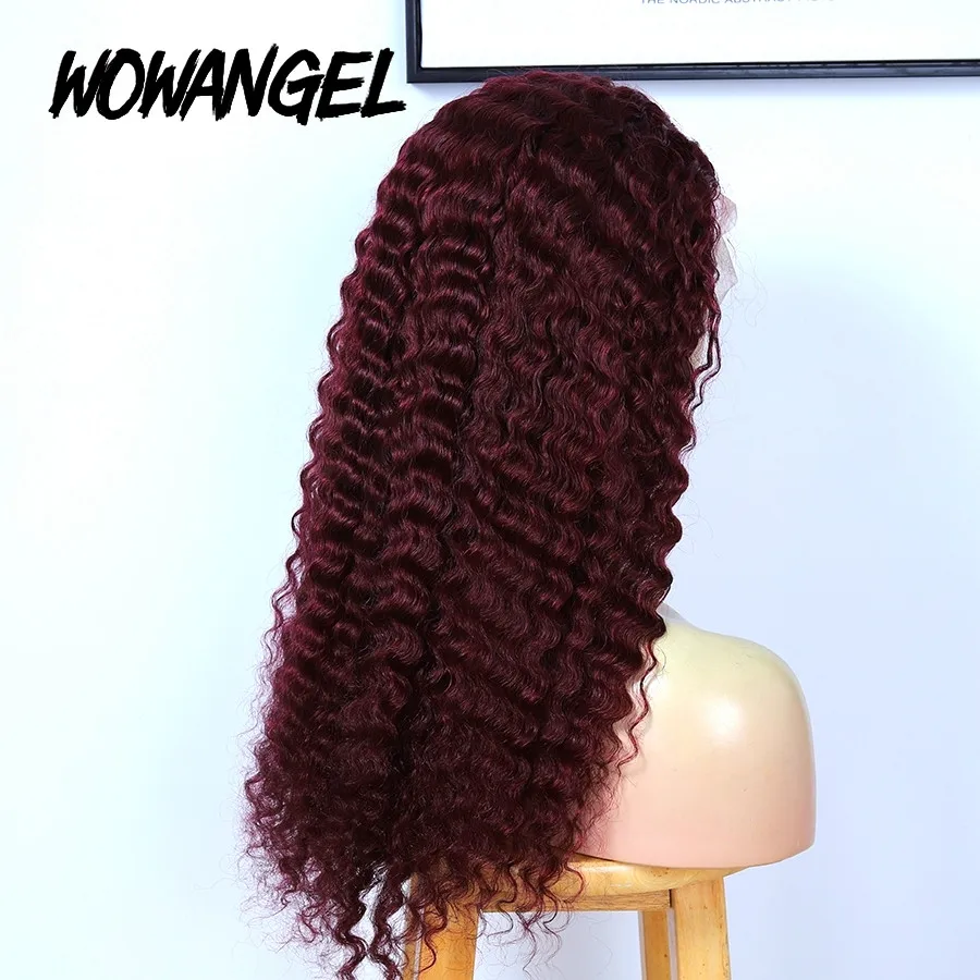 99J Бургундский глубокий кудрявый кружевной передний парик глубокая волна 13x 4 кружевные передние человеческие волосы парики 250% плотность кружева парик Humain волосы для женщин