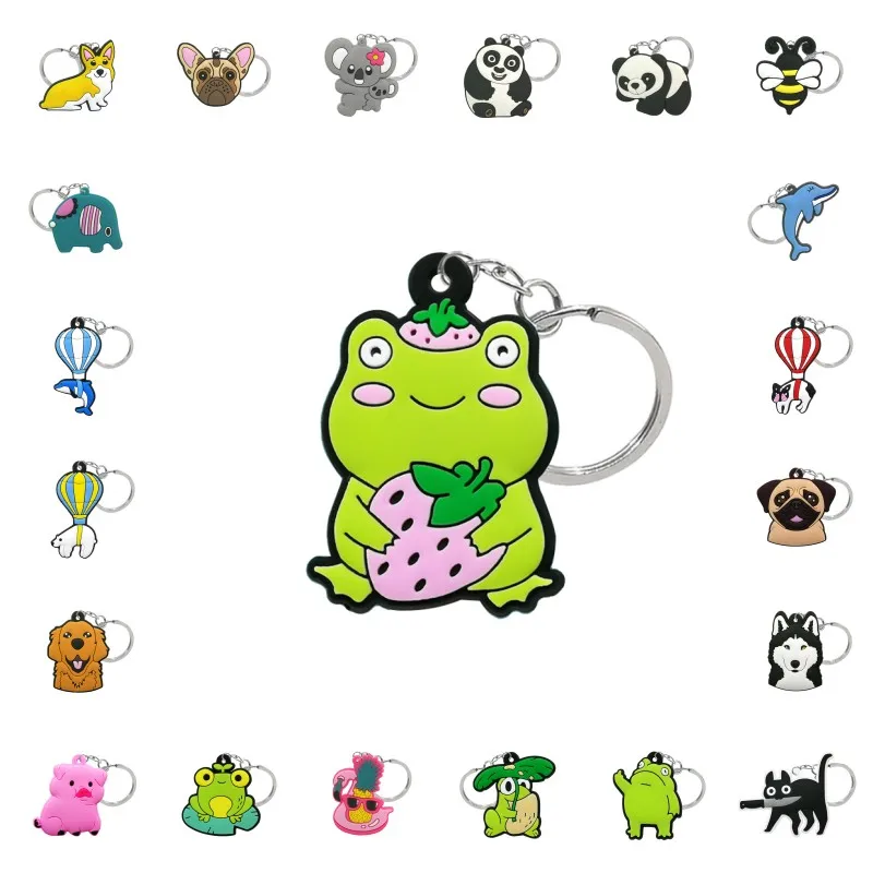 1 шт. ПВХ Новый стильный брелок животные Мультяшные брелки с рисунком собака лягушка кошка змея утка брелки для ключей автомобильные аксессуары