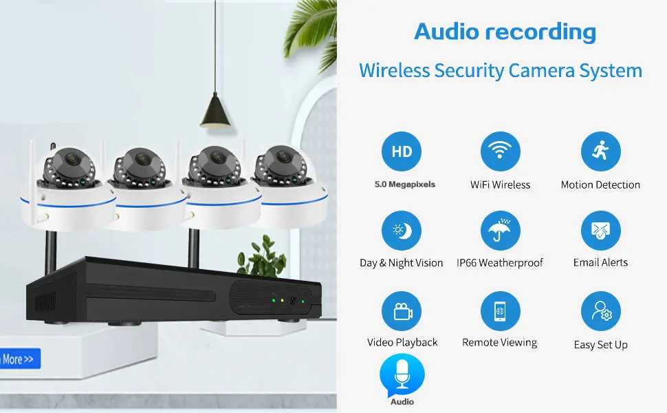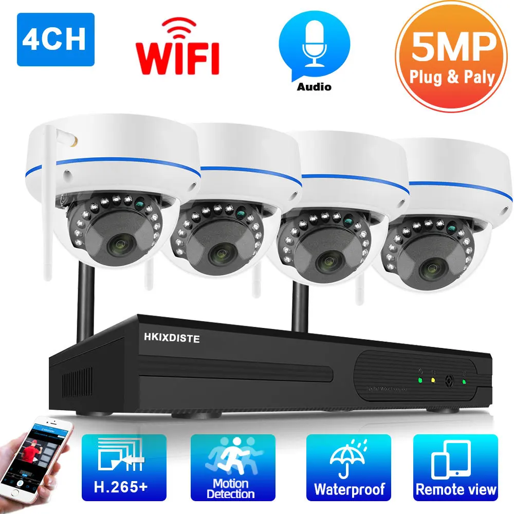 Система видеонаблюдения, 4 канала, IP-камера, Wi-Fi, NVR, 5 МП, беспроводной сетевой видеорегистратор, наружная аудиосистема, купольная камера видеонаблюдения, Wi-Fi, 4 канала
