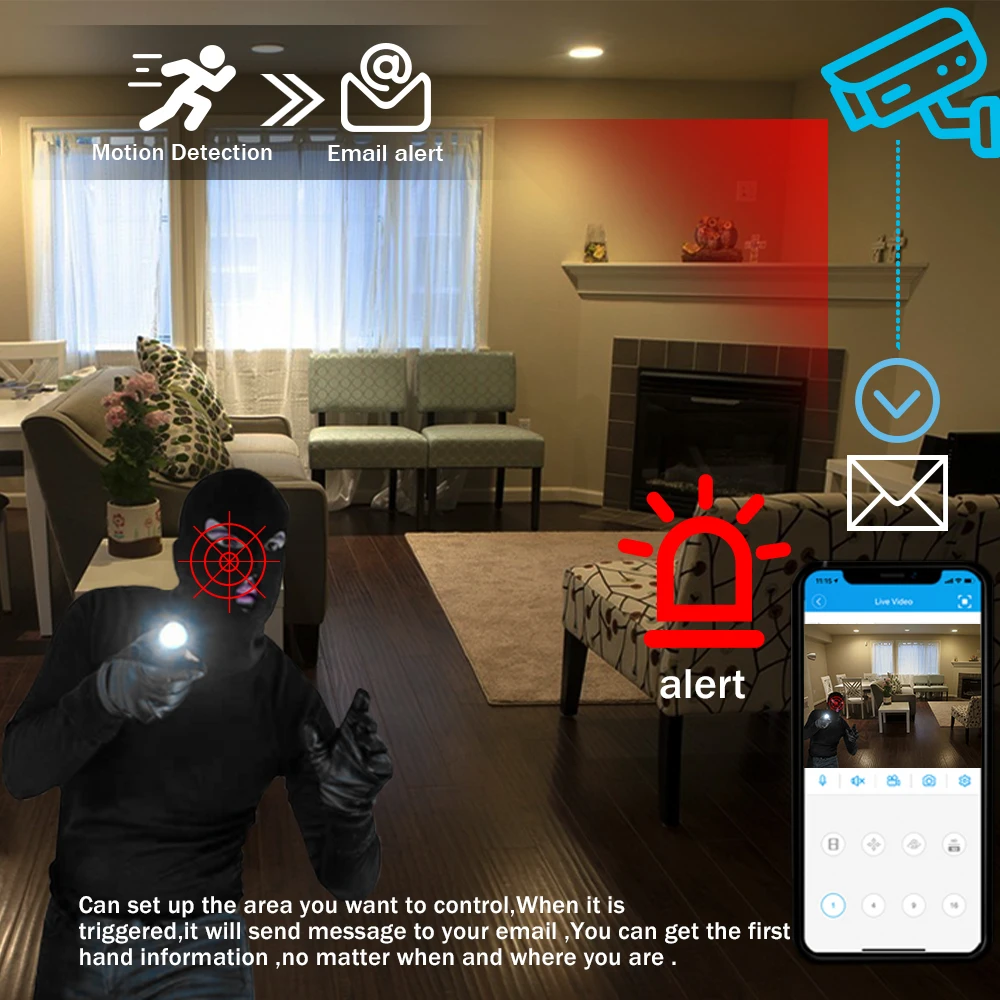 Можно настроить область, которую вы хотите контролировать, когда она срабатывает, она отправит сообщение на вашу электронную почту, вы можете получить информацию из первых рук, независимо от того, где и когда вы находитесь.