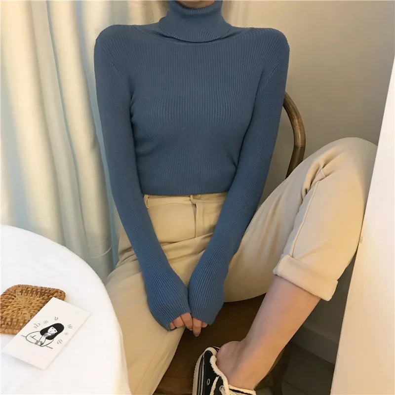 Женский трикотажный свитер-водолазка с длинным рукавом, WDC8684